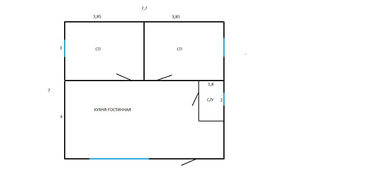 | Двери | Без межкомнатных дверей. Входная дверь с терморазрывом |